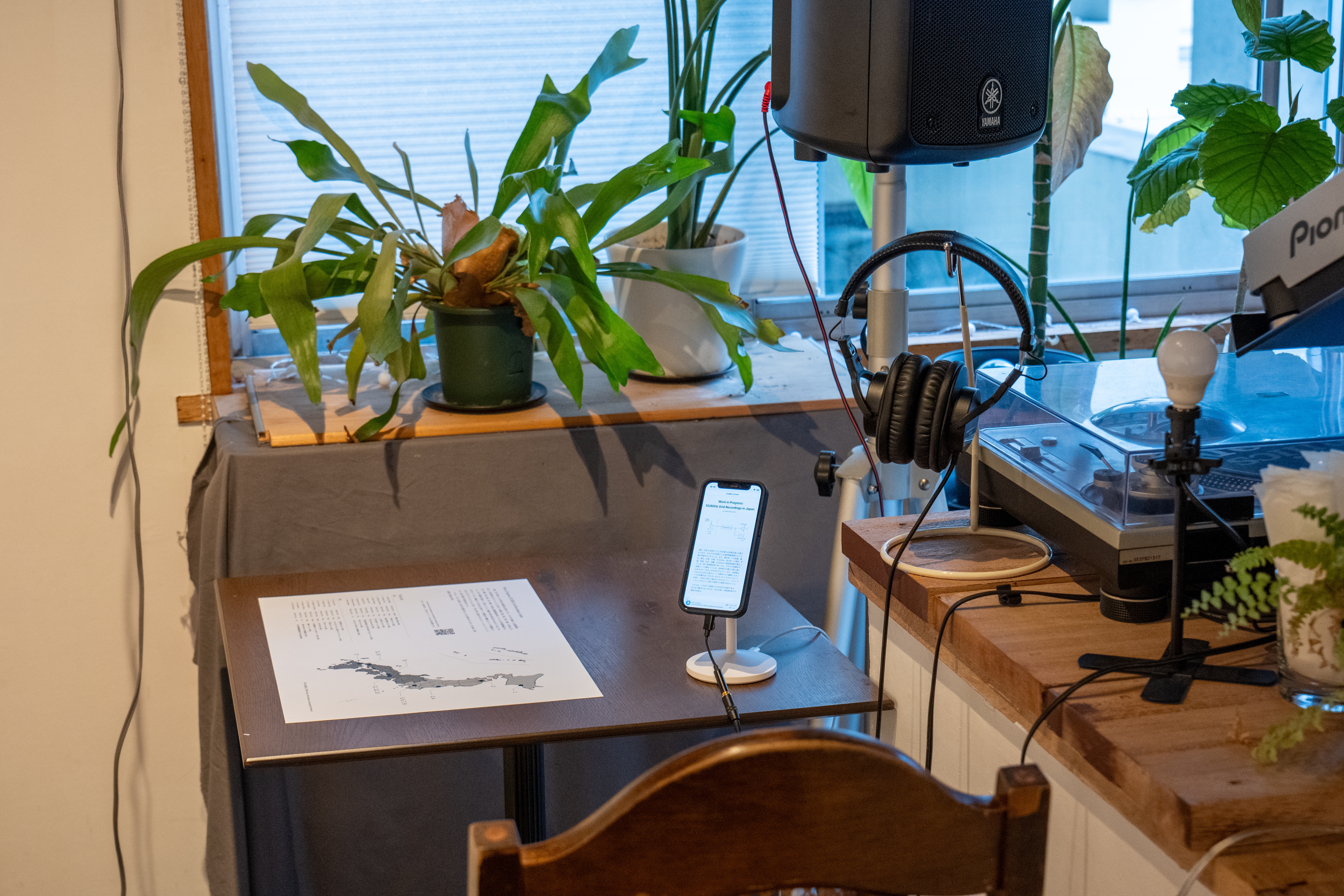 また、これまで各地で録音してきた、降圧された電気をレコーダーで収録した音源を聴くことができるシステムも同時に設置している。現在、日本では地方ごとに10の電力の供給区域に分割されており、それぞれの地域ごとの送配電事業者によって電力供給がなされている。また、東日本(=北海道、東北、東京、中部、北陸)では50Hz、西日本(=関西、中国、四国、九州、沖縄)では60Hzと電源周波数が異なっている。同じ周波数地域であっても、それぞれ発電所や送電ルートは異なっている。各地域での電力の質に違いはあるのか?あるとすればどのように?また、地域差よりも引き込まれた後のルートや接続された機器によるノイズの影響のほうが大きいのだろうか?そうした問いから継続して録音してきた音のうち、6つの供給区域・18地点での音源を視聴できる。これらの音源は現在もWEB上で公開している。
